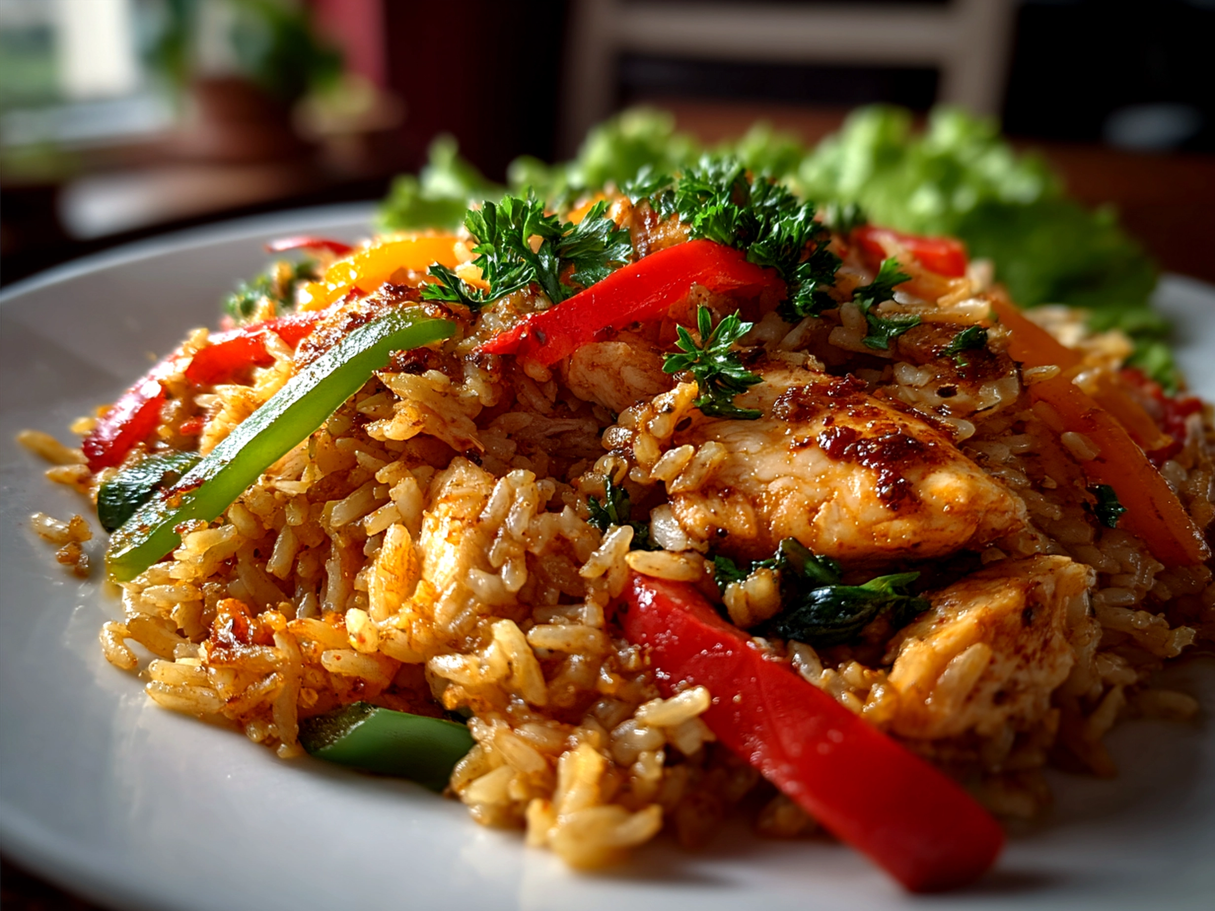 Colorful Chicken Fajita Rice combines tender chicken strips with vibrant bell peppers and spices, served over fluffy rice for a quick and flavorful Mexican-inspired meal.