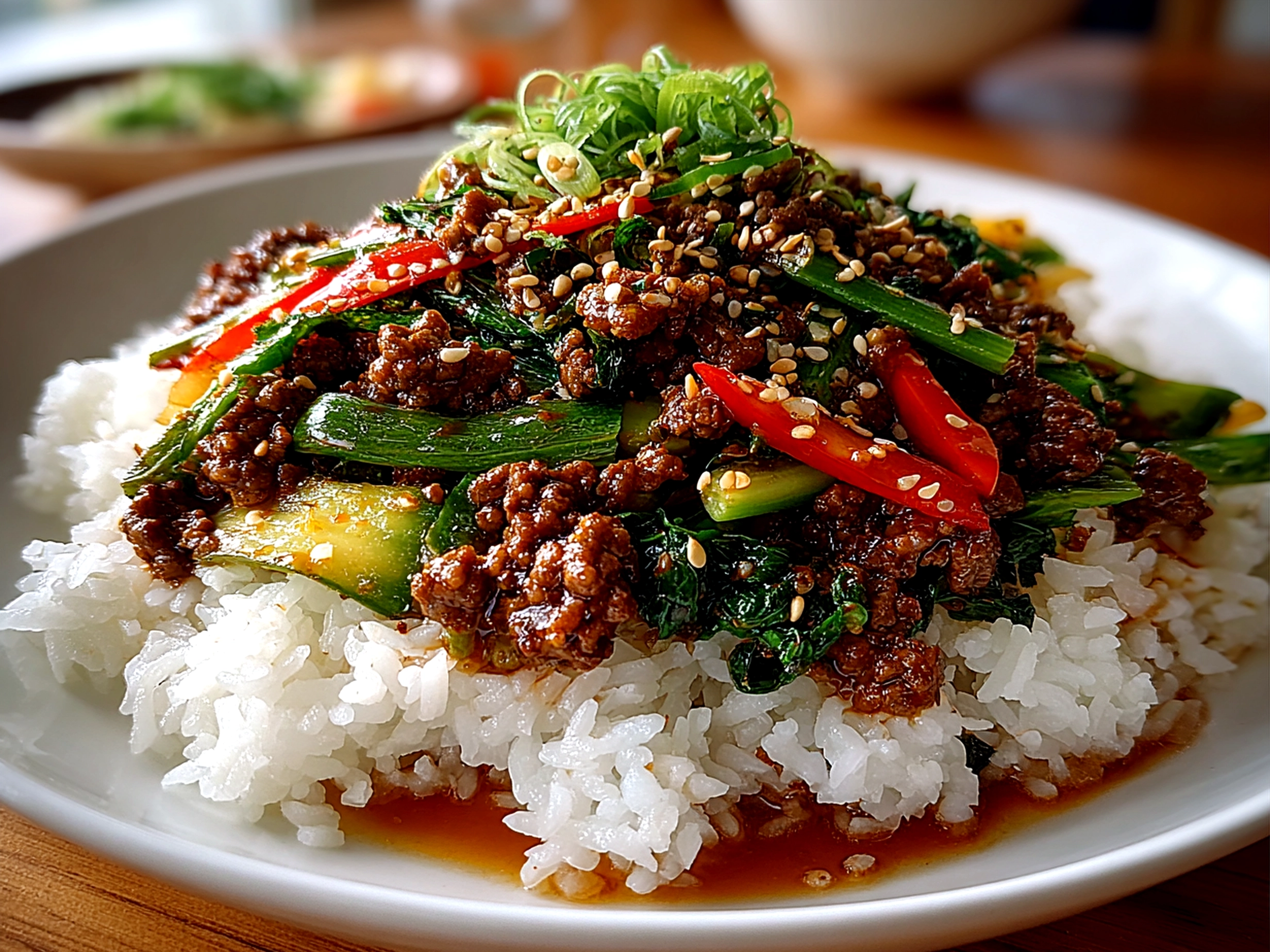 This Korean Ground Beef truly shines when served with a simple bed of steamed white rice or fluffy jasmine rice. The rice soaks up the sauce beautifully, turning every bite into a comforting experience.