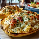 Deliciously creamy Spaghetti Squash Alfredo Boats combine tender spaghetti squash strands with rich Alfredo sauce, making a healthy and comforting Italian-inspired meal.