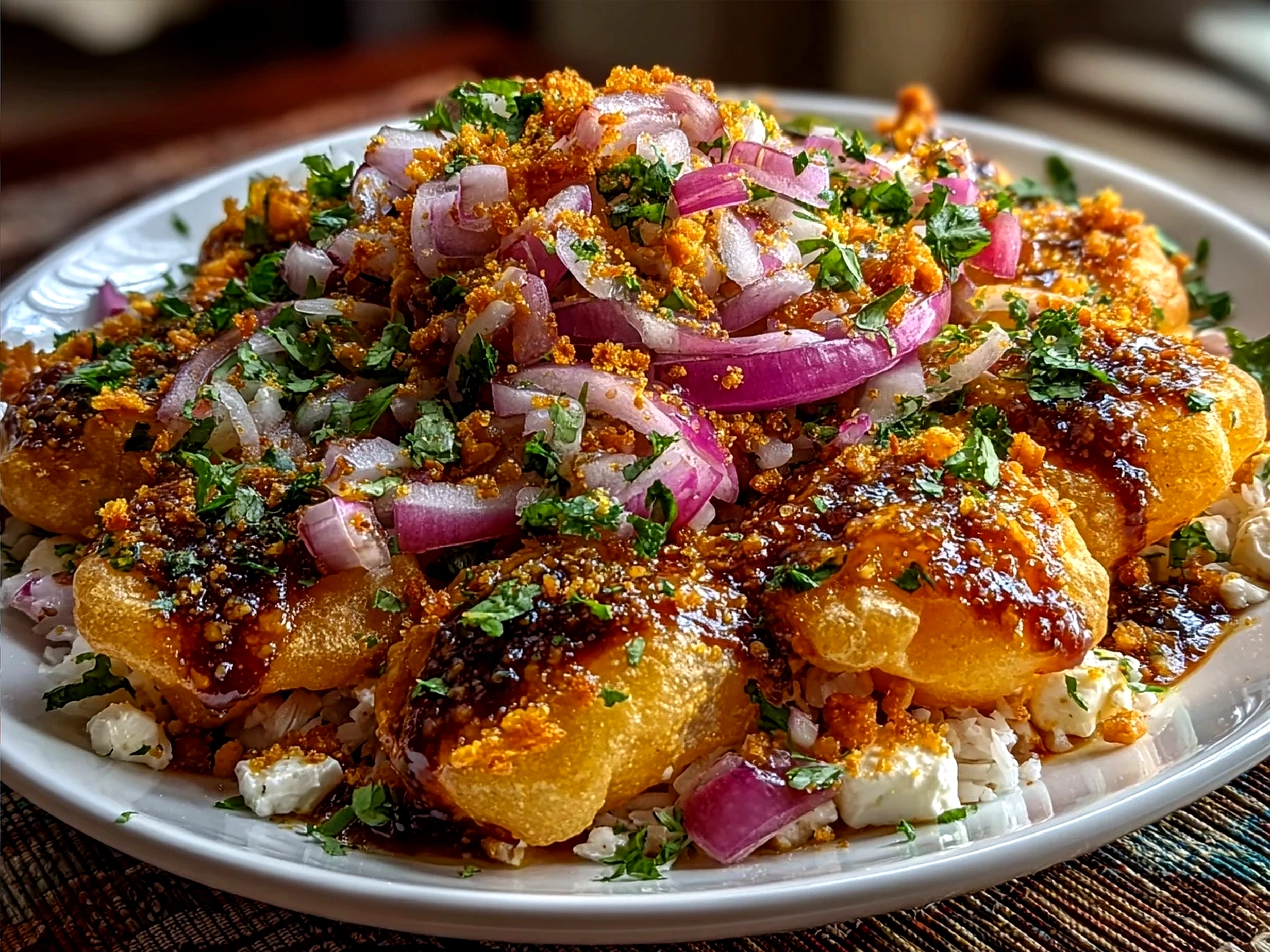 This chaat pairs beautifully with warm, soft flatbreads like naan or roti, or a crisp papad on the side for some extra crunch. It’s also lovely with a cooling yogurt dip—a bit like a tangy raita—to balance the spice and tang.