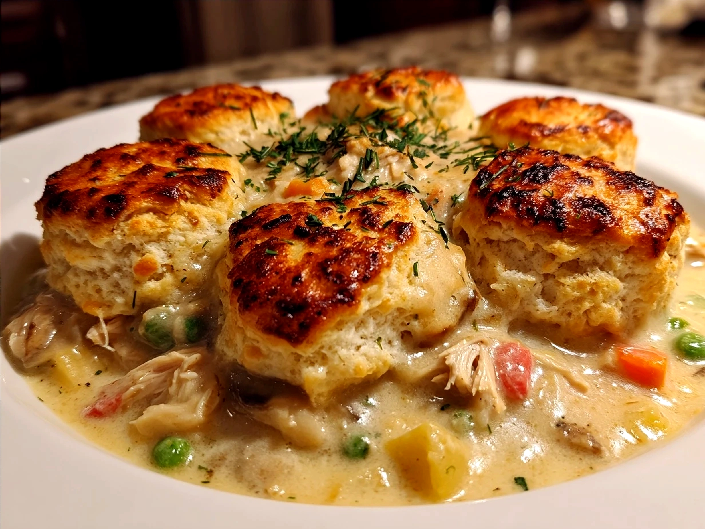 Turkey Pot Pie with Biscuit Topping